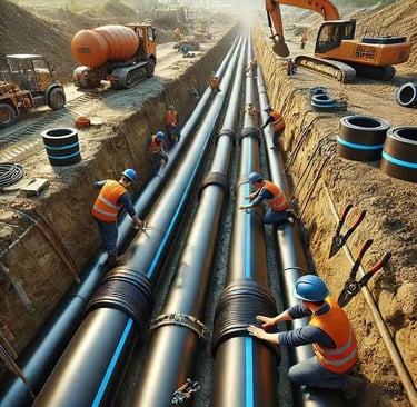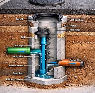 تصميم وتركيب غرف التفتيش وخطوط الطرد الرئيسية.