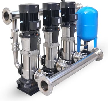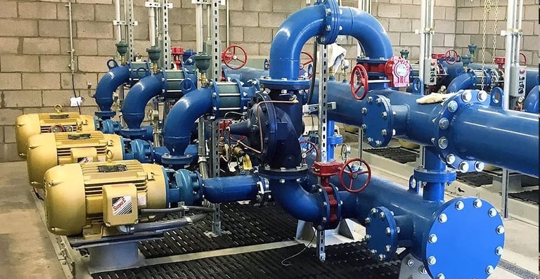 محطات الرفع والبوستر: تنفيذ غرف مضخات الحريق وتغذية المياه للمجمعات السكنية (Compounds) باستخدام لوحات تحكم ذكية (VFD)