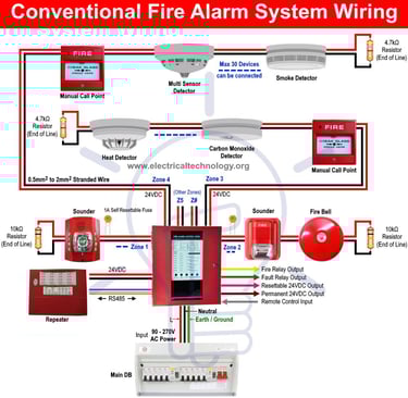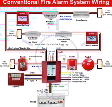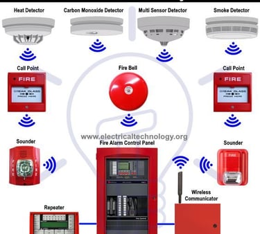 ملاحظة: في المشاريع الكبيرة، يتم ربط نظام الإنذار بأنظمة أخرى مثل المصاعد (لإنزالها للدور الأرضي) وأنظمة التكييف (لإغلاقها ومنع انتشار الدخان).