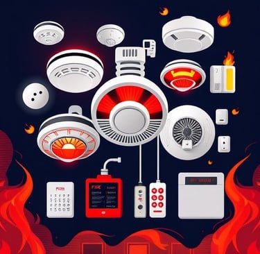 كاشف الدخان (Smoke Detector): الأكثر شيوعاً، يعمل على كشف جزيئات الدخان.